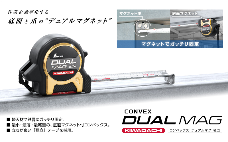 作業を効率化するデュアルマグタイプのコンベックスが新登場!