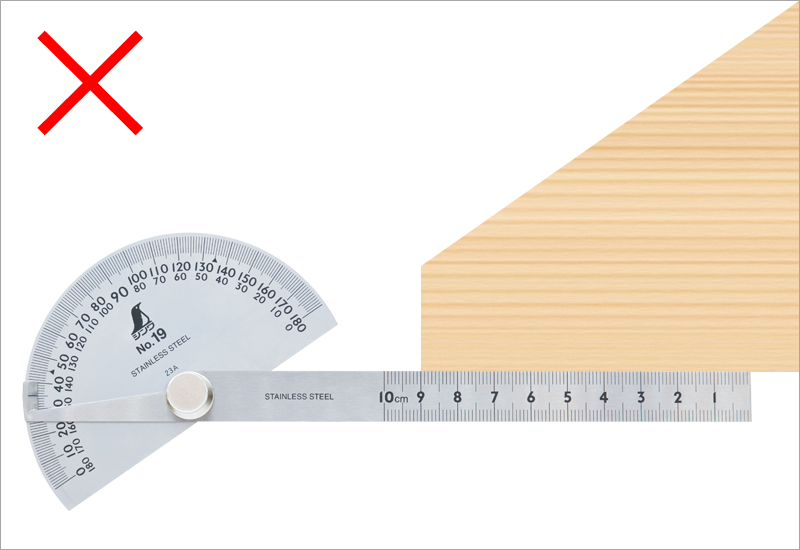 プロトラクターは「分度板」と「竿」が一体になった道具で、古くから大工さんにも愛用されています。