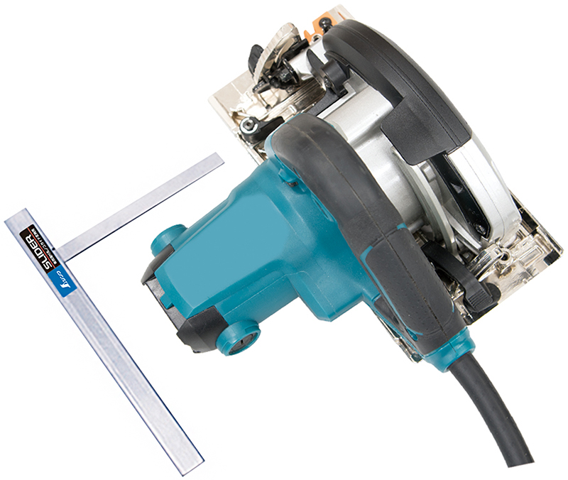 直角切り専用のシンプルな丸ノコガイド定規です。切断の際は2 箇所の「突き当て確認窓」で突き当てと材料に隙間がないことを確認することで、直角切りができます。