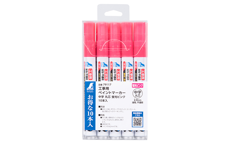 | 製品名 | 工事用 ペイントマーカー中字 丸芯 蛍光ピンク 10本入 |