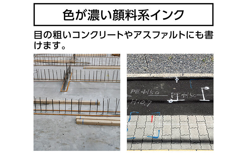 ●コンクリートなどの粗い面にマーキングしてもすり減りが少ない超耐久芯です。
