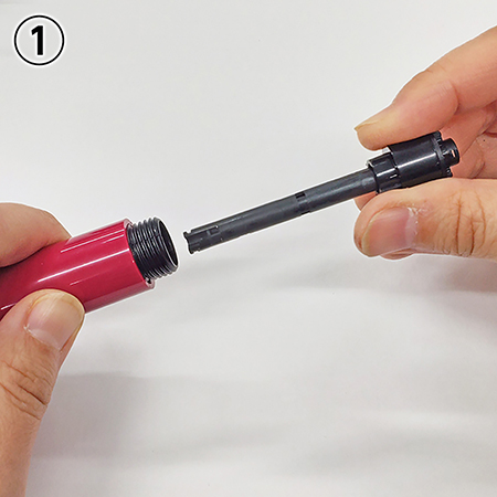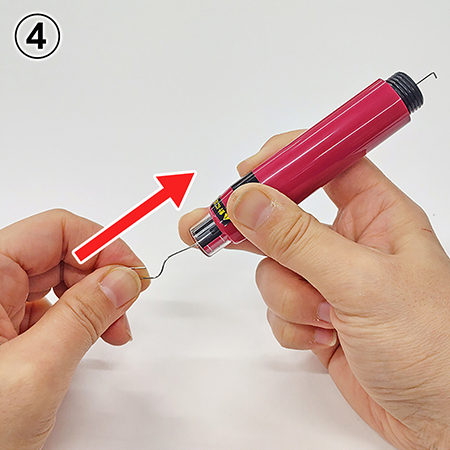 ④ペンチ等で引き抜けない場合は、針が出てくる先端の穴に細長いものを差し込んで、押し出してください。